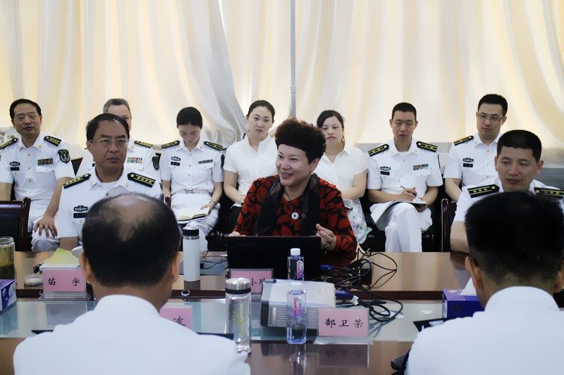 海军工程大学副校长苗宇首先欢迎我院常务副院长姚小玲教授一行,并对海军工程大学思政课教研现状作简要介绍。随后,姚小玲教授从我校近年来“本-硕-博”思想政治理论课教学实际出发,围绕各门课程的教学改革思路、课堂教学新做法、未来发展设想等几个方面展开讨论。