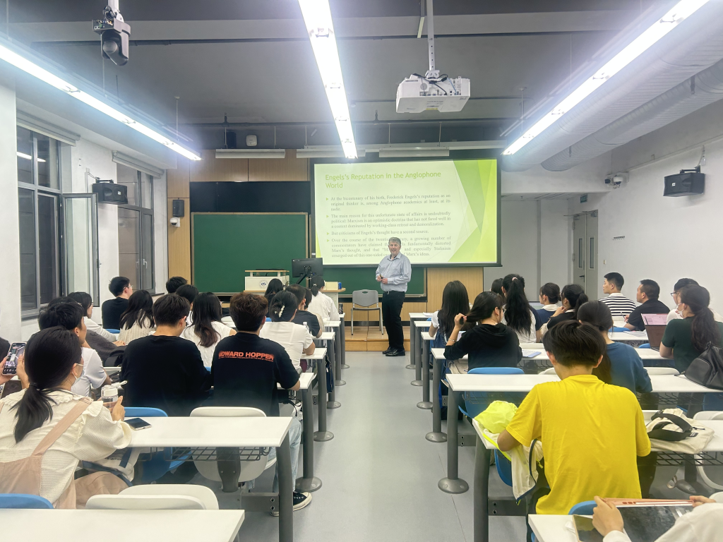 9月26日,云顶官网线路检测邀请伦敦南岸大学教授,英国著名马克思主义学者保罗·布莱克里奇(Paul Blackledge)在新主楼C201教室为学院师生开展讲座,作为“海外名家系列讲座”第一讲。讲座主题为驳议“马恩对立论”,主持人为云顶官网线路检测刘娜娜,学术翻译为云顶官网线路检测硕士研究生夏雨梦和崔珺涵。