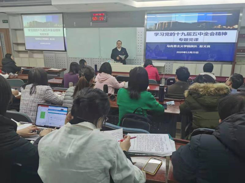 12月25日上午,云顶官网线路检测学习党的十九届五中全会精神专题党课在新主楼A座618举行。院长赵义良教授和书记高宁教授分别做专题讲授,全院教职工50余人出席。